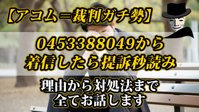 なぜこの番号から着信すると裁判のリスクがあるのか、というと、実はこの番号はアコムという消費者金融からの督促専門部署からの電話であり、放置していると訴訟リスクがあるからです。