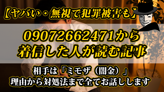 【ヤバい・無視で犯罪被害も】09072662471から着信した人が読む記事|相手は「ミモザ(闇金)」理由から対処法まで全てお話しします