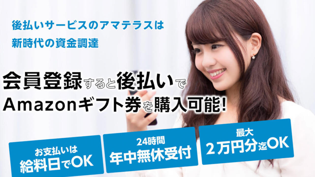アマテラスが提供しているのは「Amazonギフトを後払いで購入できる」というサービスです。クレジットカードのショッピング枠が残っている人であれば、いつでも欲しい物を購入することができるでしょう。