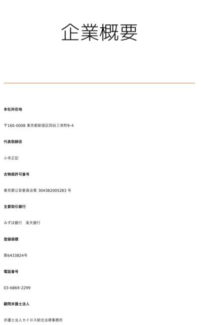 公式サイトには、代表者氏名や本社情報などもしっかりと記載されています。