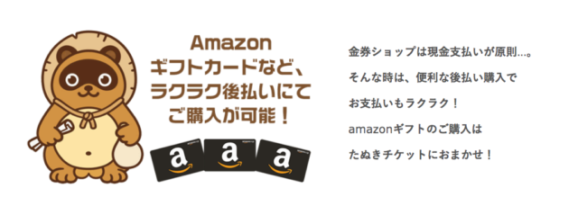たぬきチケットは後払いでAmazonギフトカードなどを購入できるサービスです。