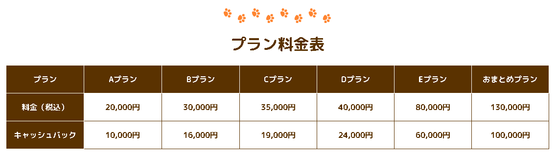 BrownTabbyでは、Aプランからおまとめプランまで複数のプランが用意されています。