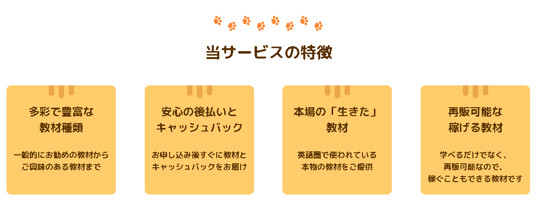 BrownTabbyで提供しているのは、英語圏で使われている本格的な教材を後払いで購入できるサービスです。