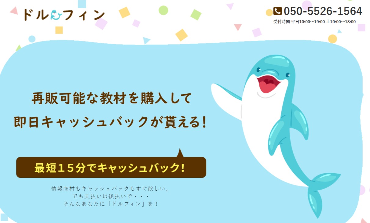 ドルフィンは、商材を購入するとキャッシュバックが受け取れるサービスです。