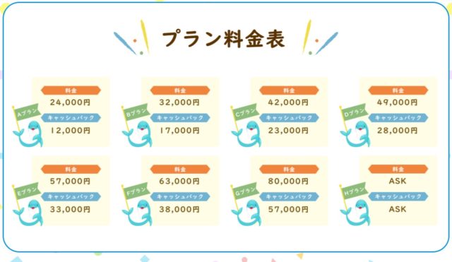 ドルフィンでは、7種類のプランから選ぶことができます。最大8万円で5万7千円のキャッシュバックとなっていますが、それ以上も相談することが可能です。