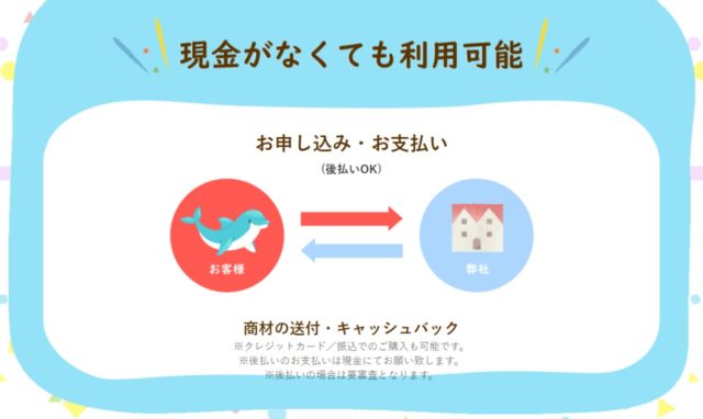 商材を購入するとキャッシュバックが貰えるサービスを提供しているのが、後払い・ツケ払い現金化業者のドルフィンです。