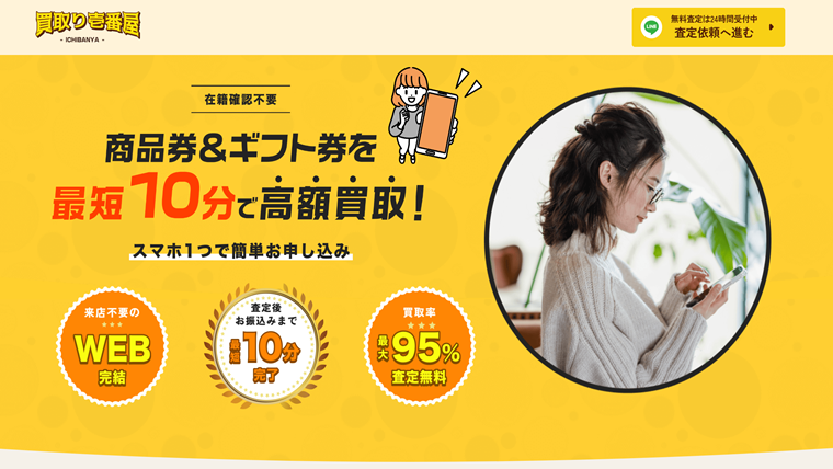 買取り壱番屋で提供しているのは、全国百貨店共通商品券、ギフト券を買取申し込みするだけで即日現金を受け取ることが出来る先払い買取サービスです。