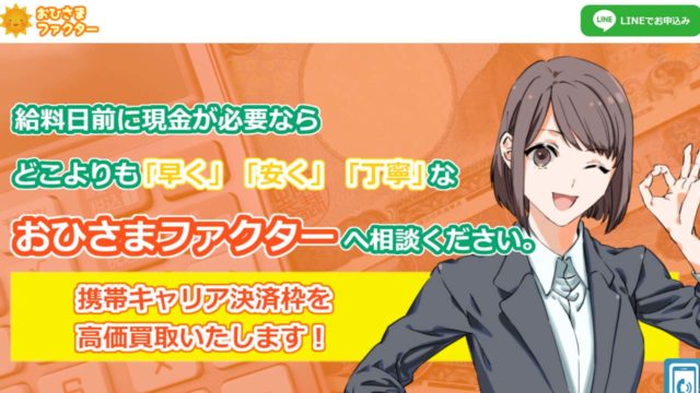 おひさまファクターは、携帯のキャリア決済枠を現金化するサービスです。