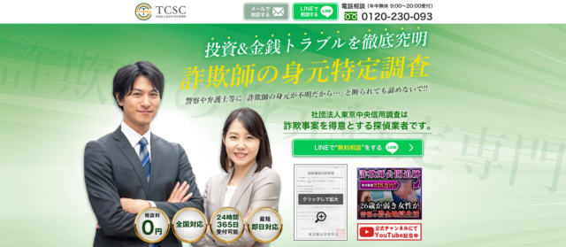 東京中央信用調査は、海外FX詐欺や仮想通貨詐欺をはじめとした詐欺被害の調査を得意としています。